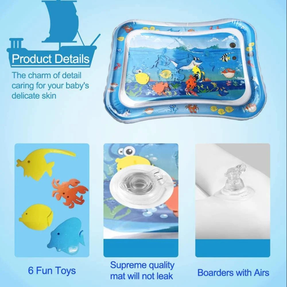 - BABY DEVELOPMENT: This water mat is an important method for developing head, neck and shoulder muscles. It will also develop hand-eye coordination with fine motor and social skills and helps brain development.